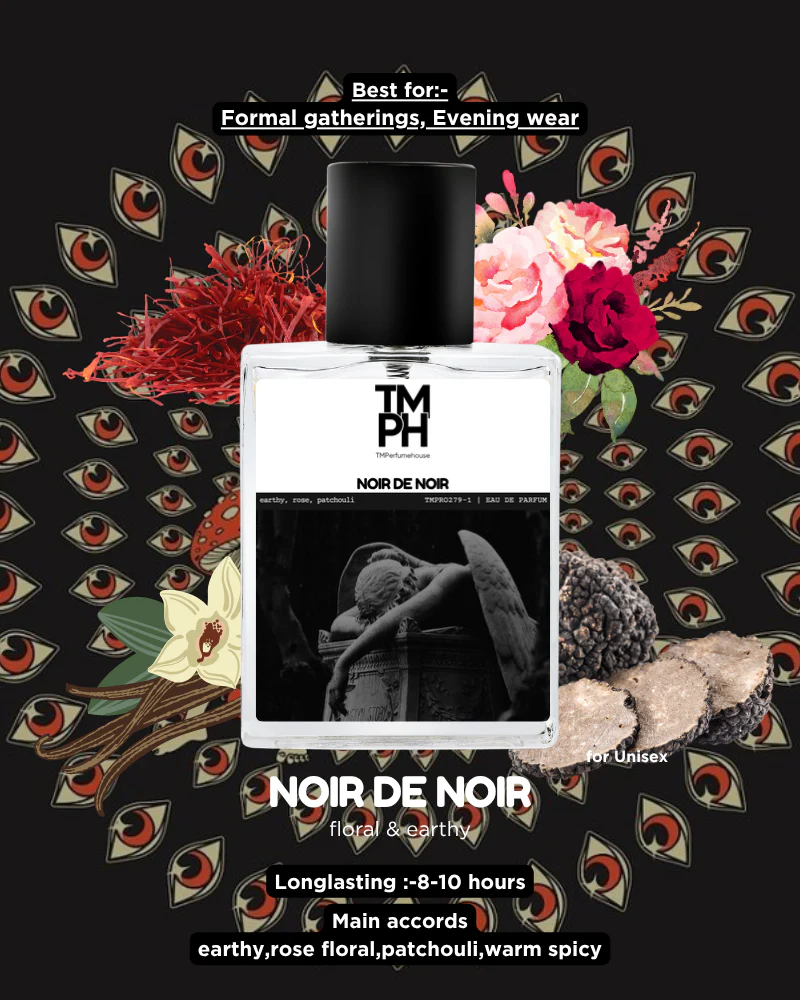 Noir De Noir is a deep and intoxicating fragrance that captures the sensual side of luxury. At first, rich notes of dark rose, oud, and earthy patchouli create an immediate dark, warm, and alluring impression. Then, the heart blends these elements into a mysterious, magnetic aura. After that, a base of amber and vanilla forms a warm, long-lasting finish. Therefore, Noir De Noir embodies power, passion, and elegance — perfect for nights that demand confidence and unforgettable allure.