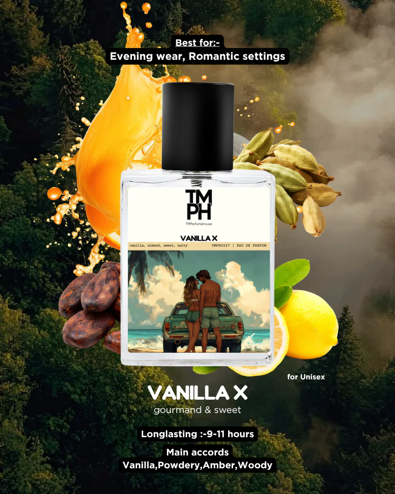 Vanilla X Perfume is a daring scent that celebrates the richness of vanilla in its most decadent form. At first, it opens with warm spices and bright citrus notes, instantly creating a lively and inviting impression. Then, the heart blends lush vanilla with delicate floral nuances, adding warmth and charm. Finally, amber, sandalwood, and musk form a deep, luxurious base. Additionally, Vanilla X Perfume leaves a seductive, long-lasting, and unforgettable trail.